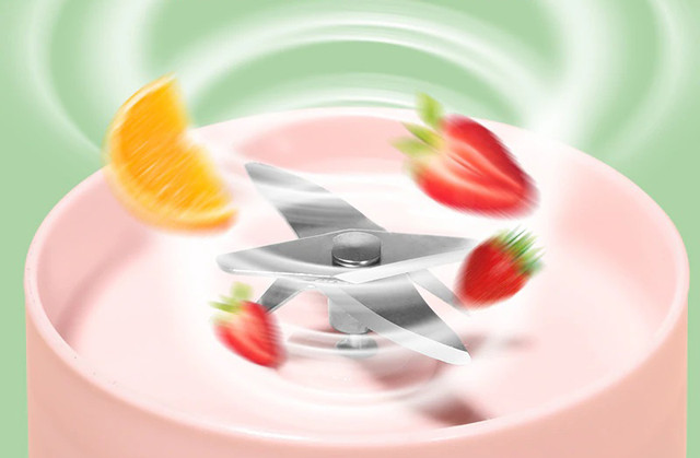 подрібнювальні ножі (4 шт.) Завдяки їм портативна пляшка блендер виконує функції подрібнення овочів і фруктів. Вони виготовлені з неіржавкої сталі, тому не корродують і не затуплюються в процесі експлуатації;